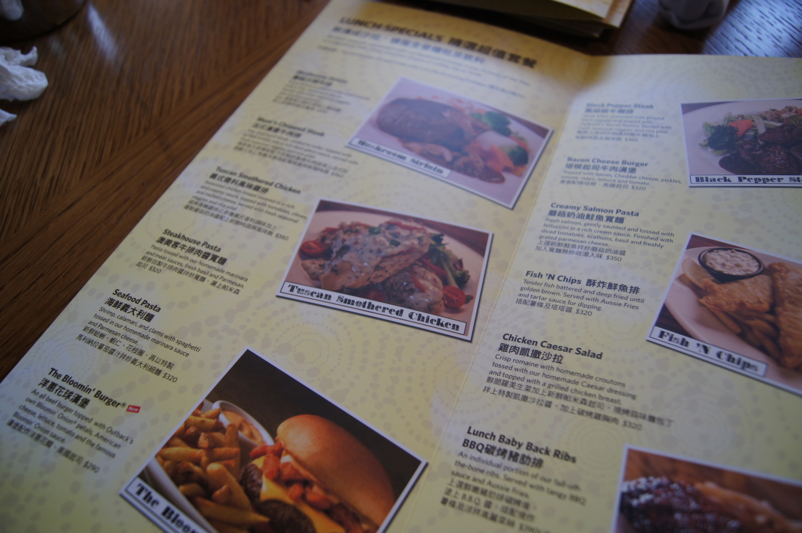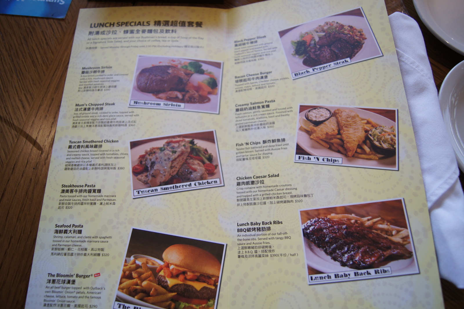 即使是每日優惠菜單,也還有分午餐跟晚餐,但是菜單上面沒有寫,