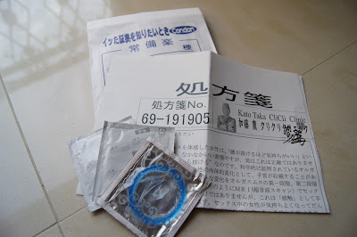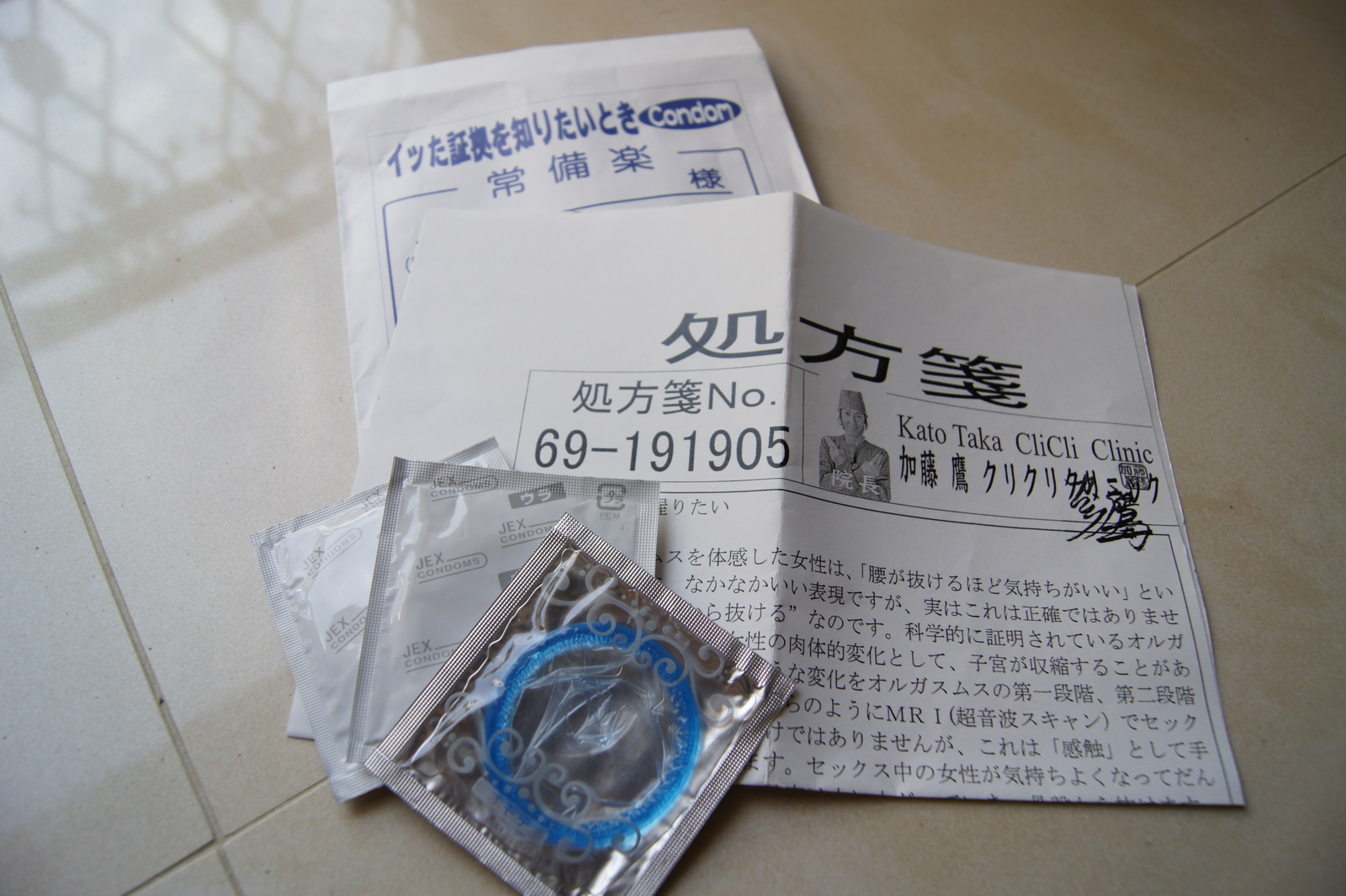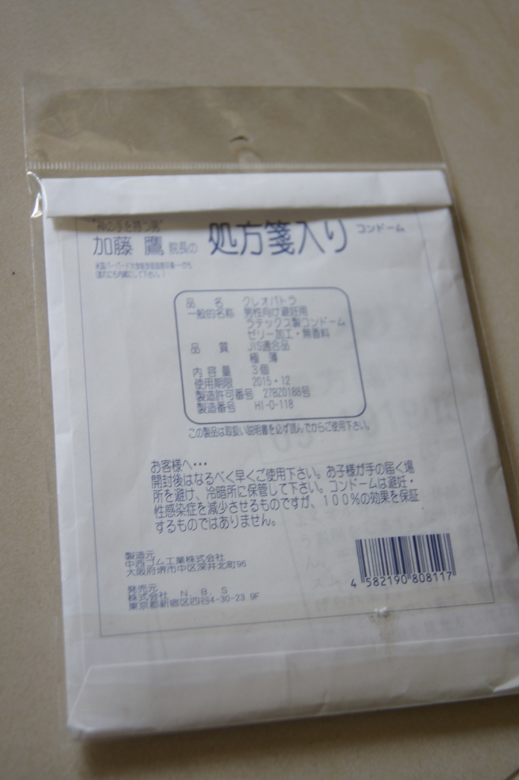打開藥袋,裡面是三枚保險套 + 一大張說明書。