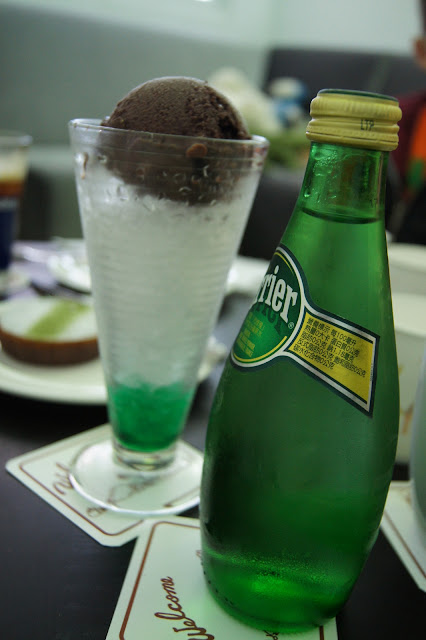這一道飲料就是薄荷漿,冰塊,巧克力冰淇淋,