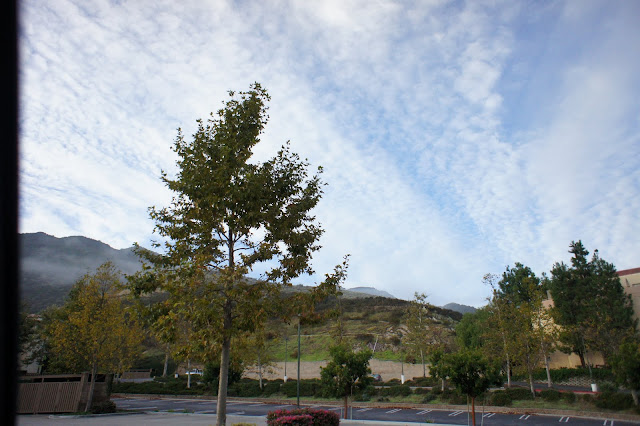 看到窗外的景色,山嵐間帶點氤韞,天空又那樣藍的叫人感動,