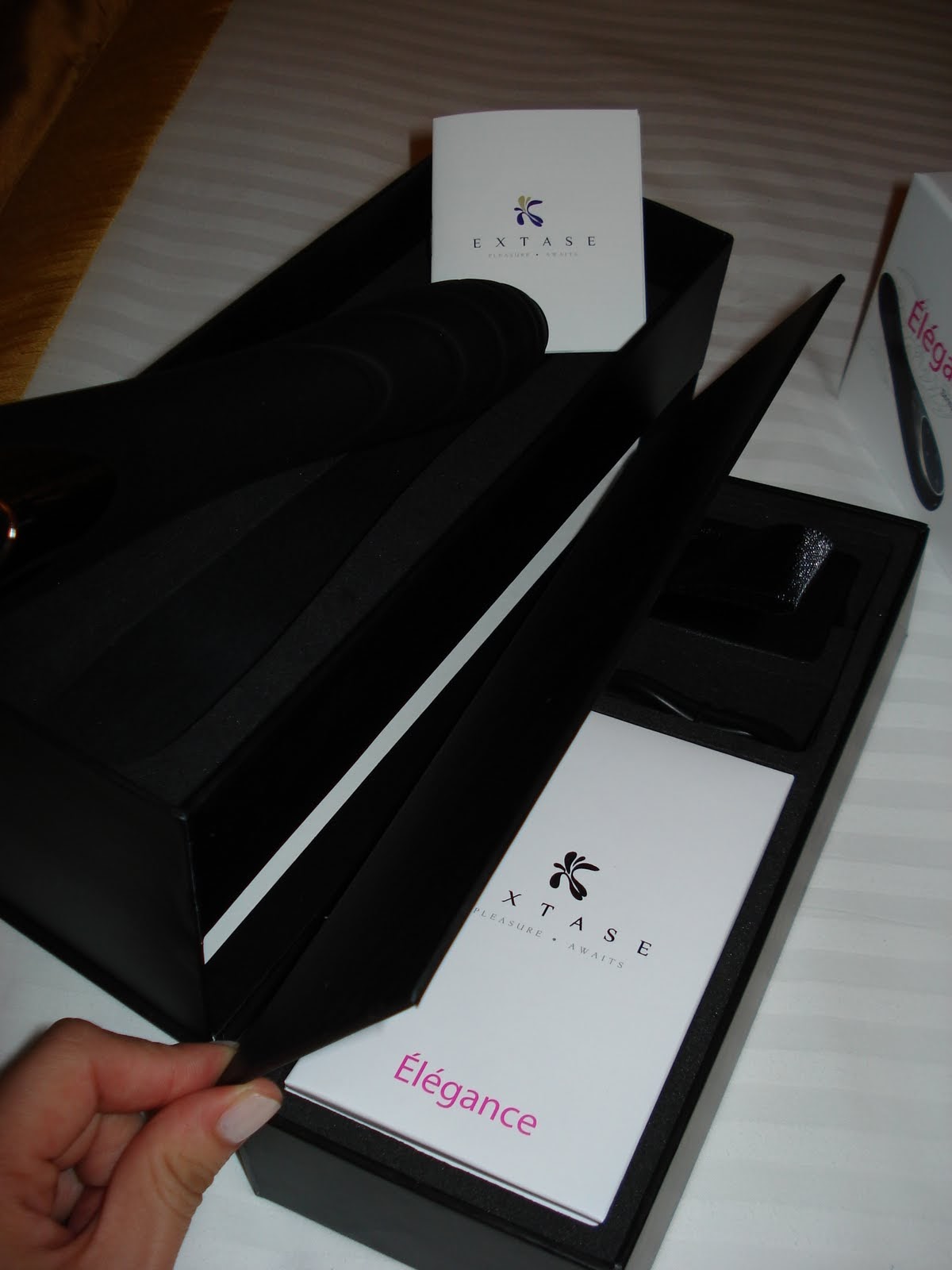 上層放的就是 elegance ,以及一小本 Extase 全系列產品的寫真集XD