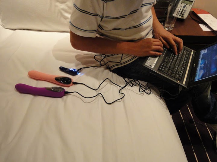 在成人展的時候,回到飯店一堆電器用品等我充電︰手機、相機、筆電等等,