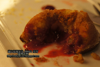 其實裡面的覆盆子漿,那略帶酸的滋味,讓我對這個小蛋糕有相當的好感。