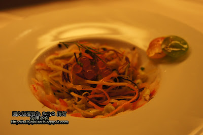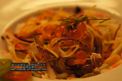 所以我的沙拉就出現非常豐富的食材,有鮭魚子、龍蝦肉等等,