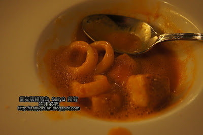 南瓜原本就是帶著甜味的蔬菜,加上以海鮮(應該是龍蝦頭吧)熬煮,